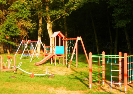 Na uwagę zasługuje również dobrze wyposażony plac zabaw. Posiadamy huśtawki, bujaki, zjeżdżalnię, piaskownicę, ściankę wspinaczkową i uwielbiany przez dzieci zjazd na linie! W 2020 roku plac zabaw został doposażony w nowe urządzeni. Są to no. wieża linarium i podniebna deskorolka