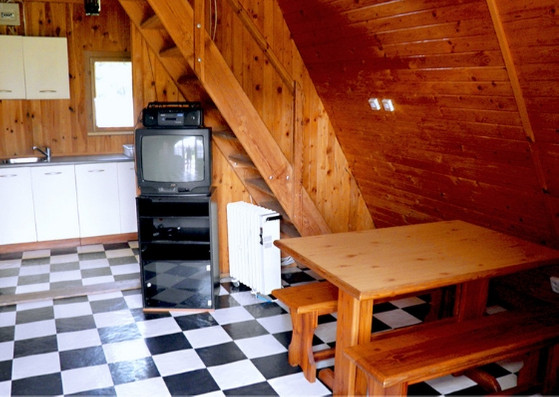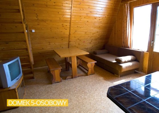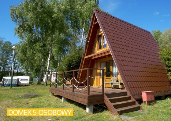 Drewniany domek 5-osobowy – położony w centralnej części Centrum Rekreacyjno-Wypoczynkowego Polubie. Składa się z salonu, kuchni i łazienki oraz górnego pokoju. W salonie znajdują się dwa łóżka, a dodatkowe trzy usytuowane są w pokoju na piętrze. Domek posiada w pełni wyposażoną kuchnię. Dodatkowo wewnątrz znajduje się szafa, komoda i telewizor. Przed domkiem jest drewniany taras/weranda z wygodnymi fotelami, na których można wypocząć i zrelaksować się.