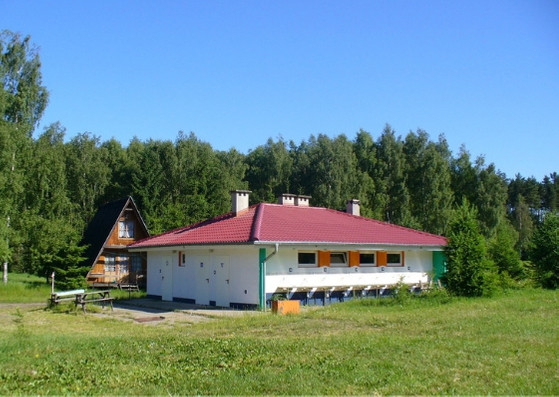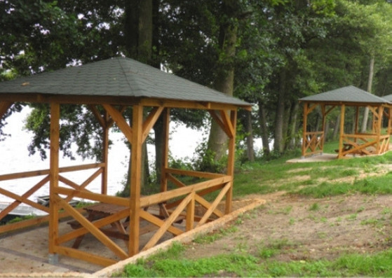 Ośrodek udostępnia ogrodzony, bezpieczny teren na którym można postawić kampera - w zależności od potrzeb – na odsłoniętym polu lub bardziej zacienione miejsce, bliżej linii drzew gdzie dodatkowo można np. rozwiesić hamak czy sznurki na pranie. Do dyspozycji gości jest pełen węzeł sanitarny (natryski, toalety, umywalki) oraz po zewnętrznej stronie budynku zlewy przeznaczone do mycia naczyń czy czerpania wody. Nad samym jeziorem znajdują się altanki ze stołami i ławkami, pod którymi można jadać posiłki. A osoby, które mają życzenie wziąć altanę/pawilon ze sobą, również mogą to zrobić i rozłożyć ją bezpośrednio przy swoim kamperze. (opłata zgodna z cennikiem)